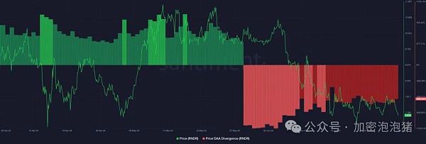 为此,我们研究了价格-DAA 差异。DAA 代表每日活跃地址,它衡量区块链上的用户活动。总体而言,价格-DAA 差异比较代币的价值增长速度是否快于网络活动。