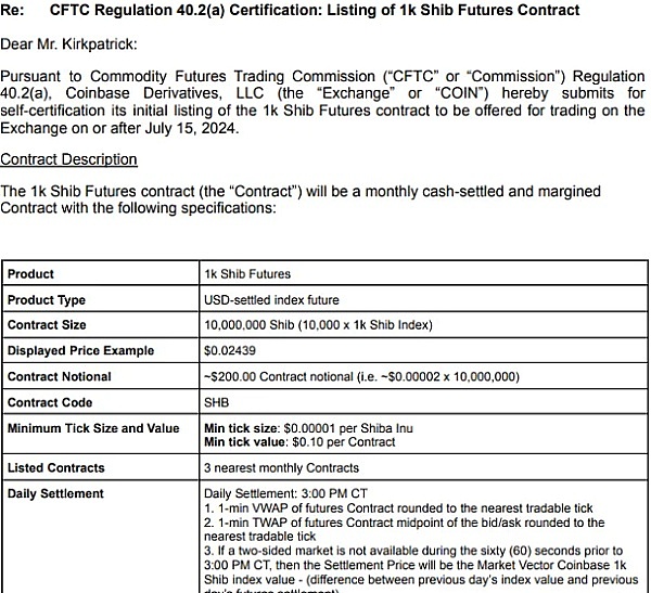 Coinbase 计划于 7 月 15 日推出 SHIB 期货,等待监管部门批准。
