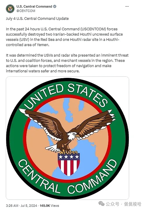 美国军方中央司令部称,已在红海上摧毁了两艘胡塞武装无人水面舰艇(USV)。它还摧毁了也门胡塞控制地区的一个雷达站,称美国水面舰艇和雷达对该地区的美国、联军和商船构成了“迫在眉睫的威胁”。