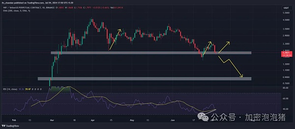 如果WIF 未能维持该水平并且每日蜡烛收盘价低于该支撑位,则可能出现大规模抛售,并可能将价格压低至 0.90 美元的水平。