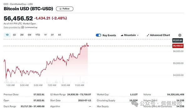 行情显示,BTC突破56500美元,现报56456.52美元,跌幅2.48%。