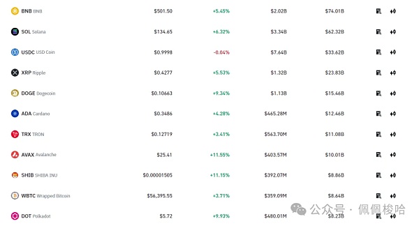 CoinMarkeCap 数据显示,其他前十大代币近24 小时涨跌不一,但相较昨日跌势都有回血: