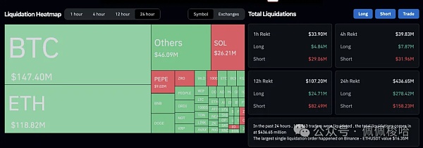 比特币反覆洗盘的行情下,据Coinglass数据显示,过去24 小时,加密货币全网爆仓金额超过4.36 亿美元,多头占2.78 亿美元居多,有125,763 人遭清算。