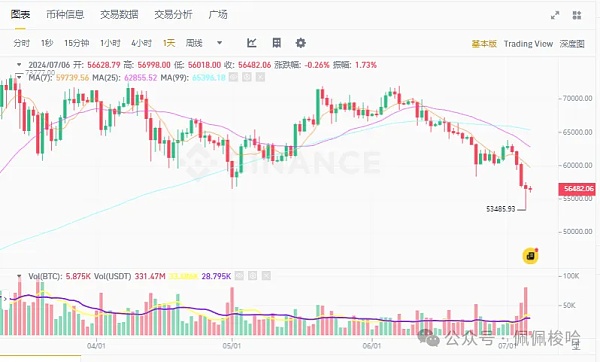 截稿前暂报56,482.06美元,近24 小时下跌1.73%。