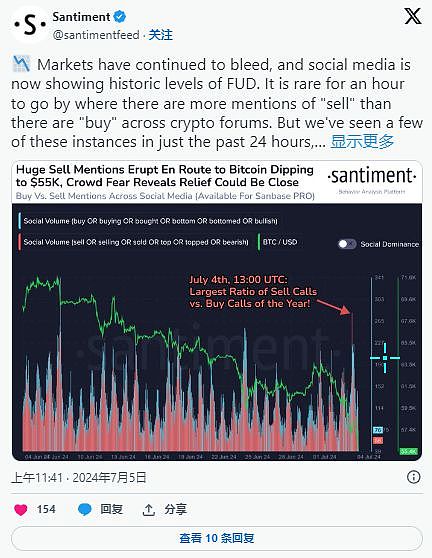 根据 Santiment 上传的数据,各大社交平台上都充斥着大量买入呼声。这一发展表明买方占据主导地位,大多数投资者都期待着“逢低买入”。
