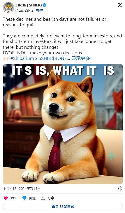 持有 Shiba Inu 代币的呼声也越来越高涨。据 Lucie. Shiba Inu 的营销主管称,耐心是唯一可以帮助投资者渡过如此艰难时刻的因素。