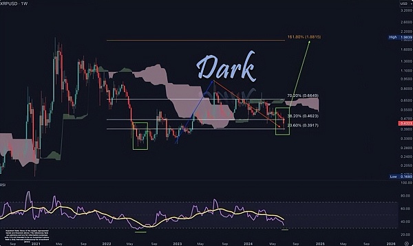 Dark Defender还指出,一目均衡表为潜在的支撑和阻力区域提供了背景信息。一目均衡表是一种综合指标,可识别趋势、支撑和阻力位,表明 XRP 当前的价格走势正在经历重大阻力。突破该云将确认强劲的看涨趋势。