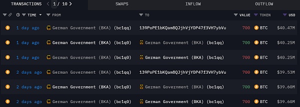对于不断地卖出,德国联邦议院议员Joana Cotar 此前也强烈批评政府抛售比特币的决策,认为将对加密货币市场稳定性产生长期负面影响,波场创办人孙宇晨还豪气宣布,他愿通过场外交易(OTC)购买德国政府持有的所有比特币,以尽量减少这些比特币流入市场对币价的影响。