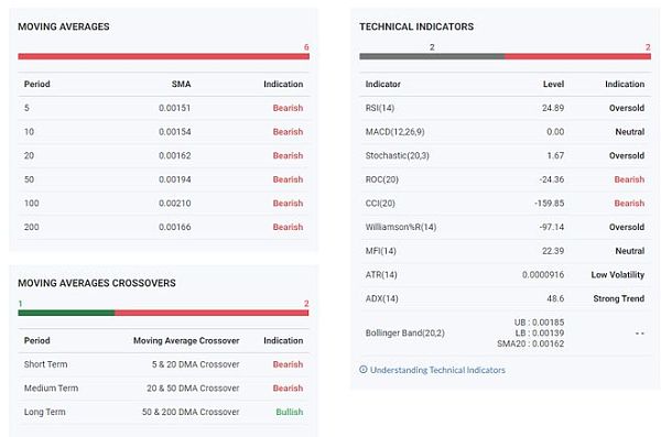 尽管 SHIB 最近经历了一段艰难时期,但并非一无所获。尽管如此,一些信息表明 SHIB 可能会反弹。RSI 的值一直处于较低水平,如下图所示。