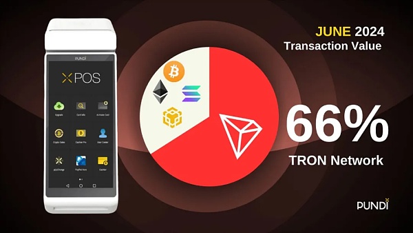 Pundi X近日在社交媒体表示,2024年6月,XPOS设备上66%的交易是使用波场网络上的USDT进行的,波场TRON已成为XPOS设备上加密支付首选。