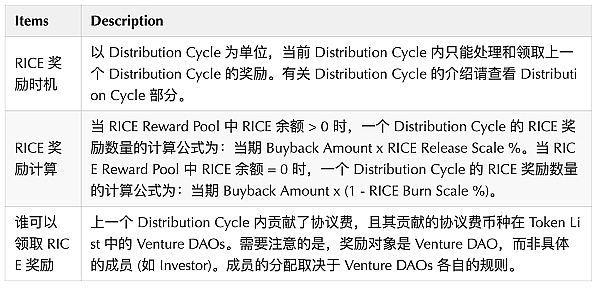一个 Distribution Cycle 的 Buyback & Burn 执行有效期为下一个 Distribution Cycle 结束之前。如果逾期未执行,则 Buyback & Burn Pool 中的资金将累计到下一个 Cycle。这同时意味着,该 Cycle 内的 RICE 奖励被清除,下一个 Cycle 的奖励受益者将获得额外分配。