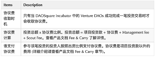 DAOSquare Incubator 用户在使用 DAOSquare Incubator 投资时产生协议费。