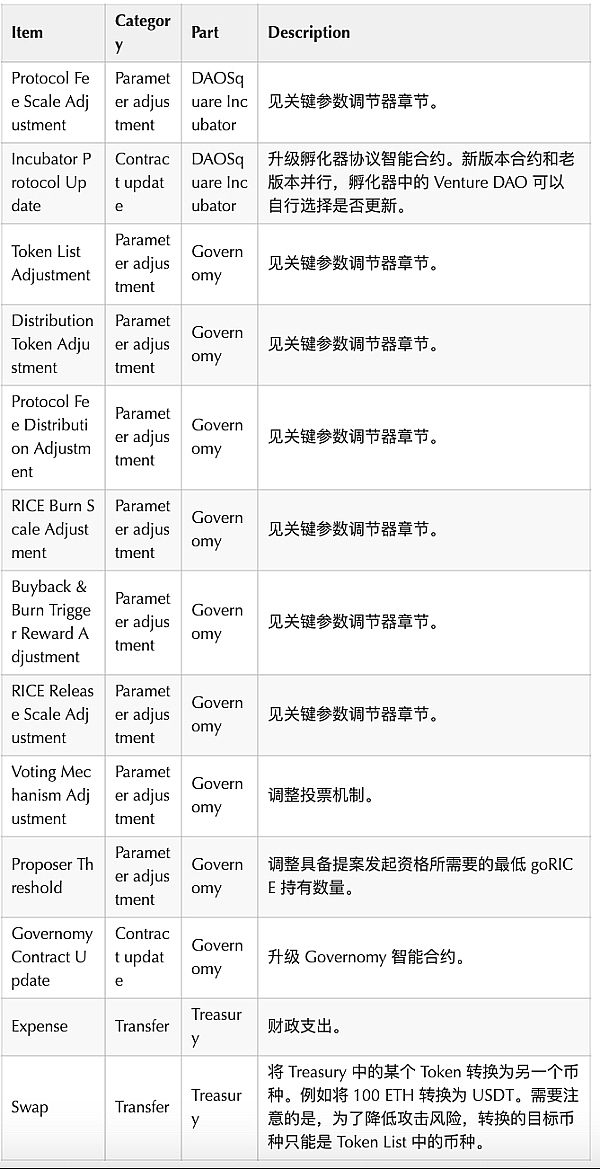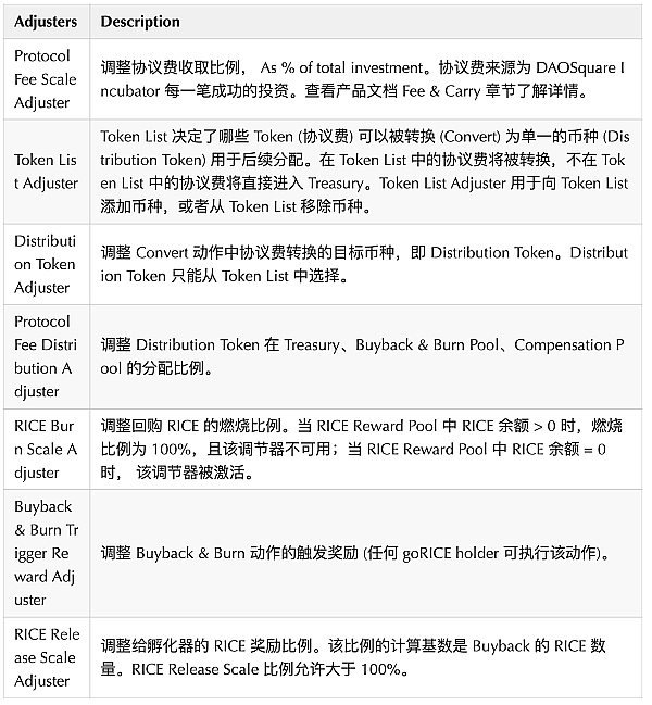 goRICE 持有人调整 Governomy 参数、DAOSquare Incubator 参数、升级合约以最大化个人利益。