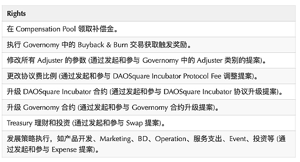 DAOSquare Incubator 的治理包括三个部分:DAOSquare Incubator、Governomy、Treasury。