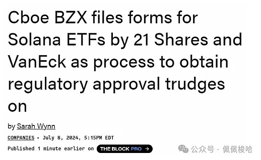 VanEck在6月底提交了Solana ETF的注册声明,21Shares也很快提交了自己的Solana ETF。很少有人说这些产品会一炮打响,部分原因是美国证监会表示SOL是一种证券。