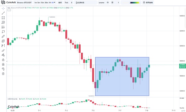 BTC目前还在箱体震荡区间,虽然走势有所回暖但未突破上升阻力位,这个位置低点不破低点,高点不破高点,如果能再来一根阳线破箱体高点,我把这个位置看做双底!