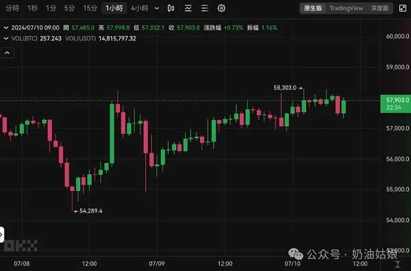 近期在德国政府持续出售比特币、Mt. Gox 交易所开始向债权人还款背景下,比特币多次下探。不过昨日BTC 在震荡中持续向上攀高,今(10)晨多次突破5.8 万美元,多空交战激烈。