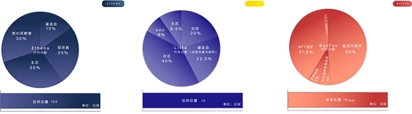 为了直观展示三个项目的代币分配情况,将它们绘制成图表: