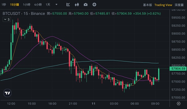 管德国政府于昨(10)日再度转出10,853.5 枚比特币(约6.38 亿美元),但比特币价格未进一步跌破日前的5.4 万美元低点,目前仍坚守在5.8 万美元左右水平,现报57,904 美元,近24 小时上涨0.46%。