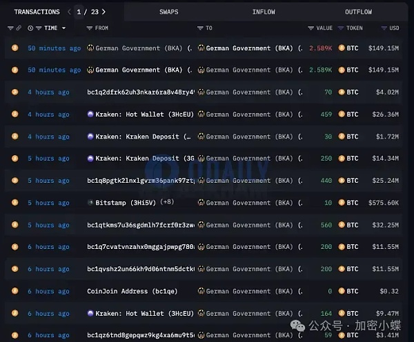 18.据 Arkham 监测,标记为“德国政府”的钱包地址今晨从 CEX 等地址提回总计 2442 枚 BTC(约 1.41 亿美元),其中从 Kraken 提回 903 枚。