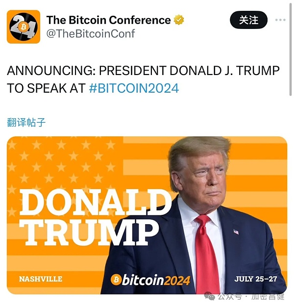 3. 美国总统大选对加密货币市场有很大影响。共和党在最新党纲中明确支持加密货币、AI 和太空产业。特朗普的支持者中也有很多加密货币持有者,这可能会影响选举结果。此外,特朗普将在 7 月于 2024 年比特币大会上发表演讲。
