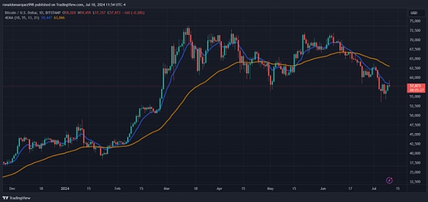 在撰写本文时,比特币的交易价格为 57,870 美元,过去一周下跌逾 4%,而过去一个月则从 6 月份 70,000 美元以上的高点大幅下跌逾 20%。
