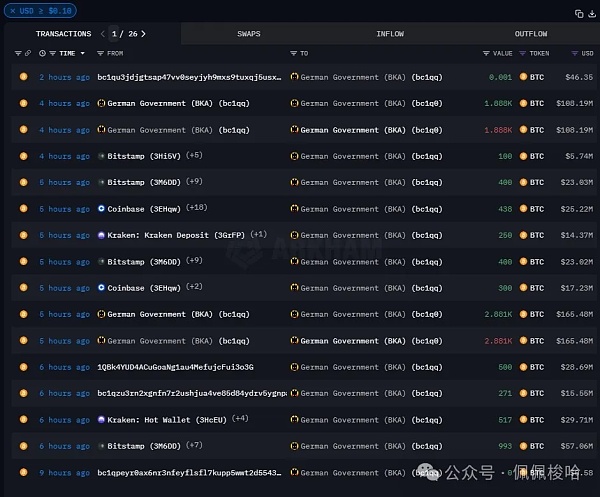 Arkham推特发文称,德国政府刚刚再次向Flow Traders、Coinbase、Kraken、Bitstamp以及139Po和bc1qu开头地址发送5000枚比特币,价值2.8644亿美元。