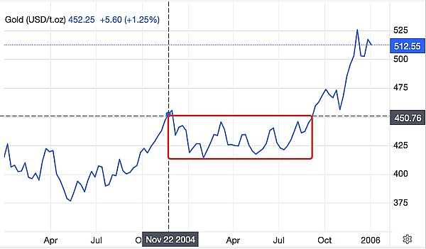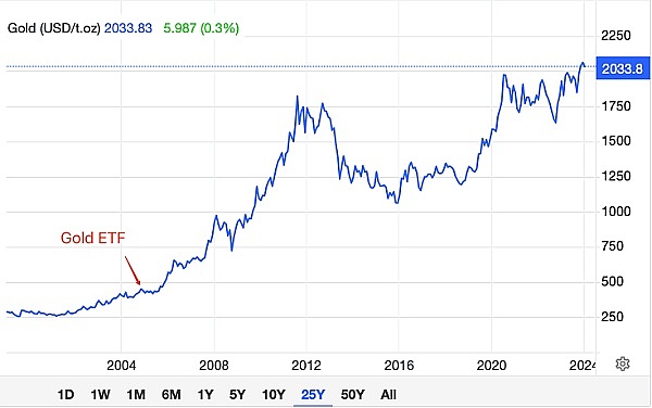 2024年黄金ETF通过之后,开启暴涨之旅的微观细节:在ETF通过,黄金价格历史新高后,落入了横盘震荡10个月之久的箱体,充分洗盘、消化后,才再次突破箱体,开启了史诗级的大牛市。
