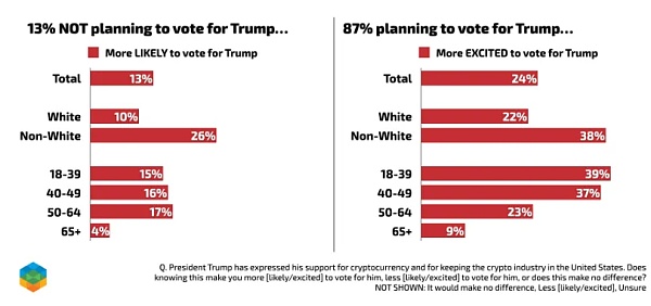 此外,根据最新民调,特朗普的亲加密货币立场正在帮助他在潜在的2024年总统选举中赢得更多来自共和党选民的支持。这份民调显示,有超过60%的共和党选民表示,特朗普的加密货币立场增加了他们对他的支持,其中约有13%的共和党人声称自己原本不打算投票给特朗普,但现在由于特朗普支持加密货币的立场,他们更有可能投票给特朗普。这意味着,特朗普通过支持加密货币,有望在2024年总统大选中取得胜利。