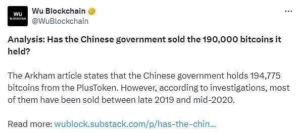 中国突传重磅:清仓19.4万枚比特币?