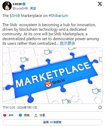 令加密货币社区大吃一惊的是,Shiba Inu 营销主管 Lucie 在 X 上分享了其在 Shibarium 上最新发布的令人兴奋的新消息。Lucie 分享了即将在 Shibarium 上推出的专用 SHIB 市场,以“在用户中实现权力民主化”。