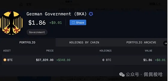 链上数据追踪平台Arkham 今(13)日凌晨发文指出,德国政府相关地址的比特币余额已耗尽。