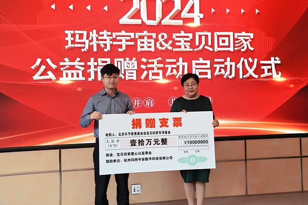 在全场嘉宾的见证下,陈博代表玛特宇宙向“宝贝回家”公益项目捐赠了首笔10万元人民币的专项善款。玛特宇宙的首笔善款不仅是对“宝贝回家”项目的实际支持、为寻找亲人的家庭带来希望和援助,更彰显玛特宇宙对公益事业的长久承诺与践行决心。