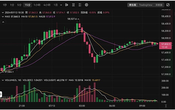 在德国政府今天凌晨传出清仓消息后,或受相关卖压影响,凌晨一度突破58,527 美元的BTC 两小时内跌去2.36%,最低来到57,144 美元,撰稿当下站回57,832 美元,近24 小时上涨1.09%。