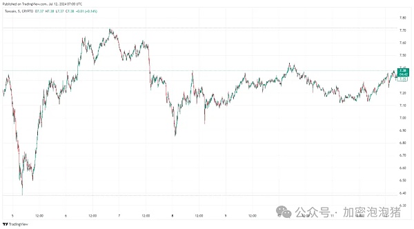 Toncoin (TON) 近期一直在盘整,反映出更广泛的市场复苏。目前,Toncoin (TON) 的价格约为 7.23 美元,经历了波动,但它仍然是技术进步方面的领先网络。TON 应用链 (TAC) 和新创业加速器计划的推出旨在加强生态系统并推动进一步采用。