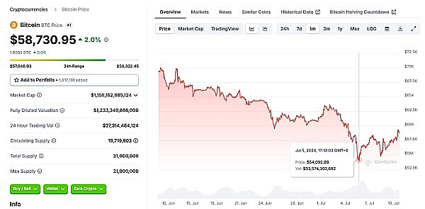 最近,投资者们被大饼二饼价格的波动时刻牵动着心弦。加密市场情绪受到德国政府连续抛售BTC与Mt.Gox回归并宣布还款计划等信息的影响,由正面转为负面,并带来了一系列负面的多米诺效应。散户市场大小玩家们也是要么在观望,要么在抛售的路上,BTC价格从6月初的$71000一路跌至本周最低点$54000左右(数据来源:CoinGecko)。