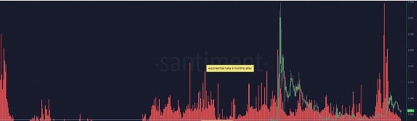 如果出现类似情况,代币价格可能会在周期前突破 ATH。然而,另一个指标是代币的 200 天 EMA。EMA 代表指数移动平均线,用于衡量一段时间内的趋势方向。截至发稿时,200 EMA(黄色)高于狗狗币的价格。
