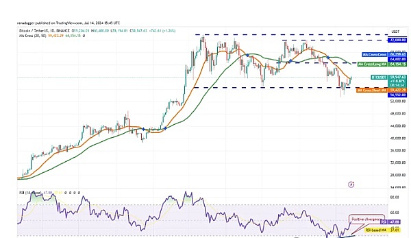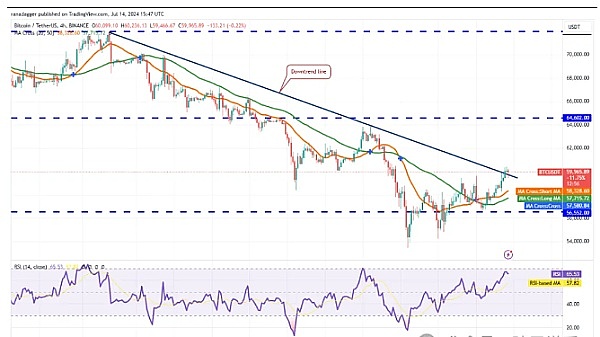 比特币 (BTC) 目前交易价格为 60,787 美元,在近期价格下跌后在区间内盘整。虽然空头成功将价格推低至区间下方,但 7 月 8 日的跌势未能突破表明看跌势头正在减弱,较低水平的卖家可能已经精疲力竭。