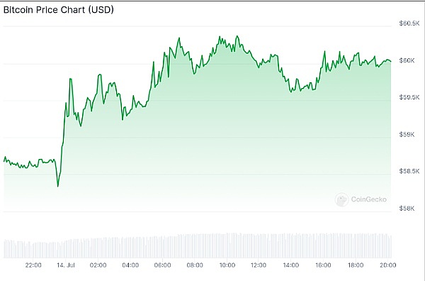 事件发生后,比特币价格飙升4%,达到60,300美元,为近十天来的最高水平。