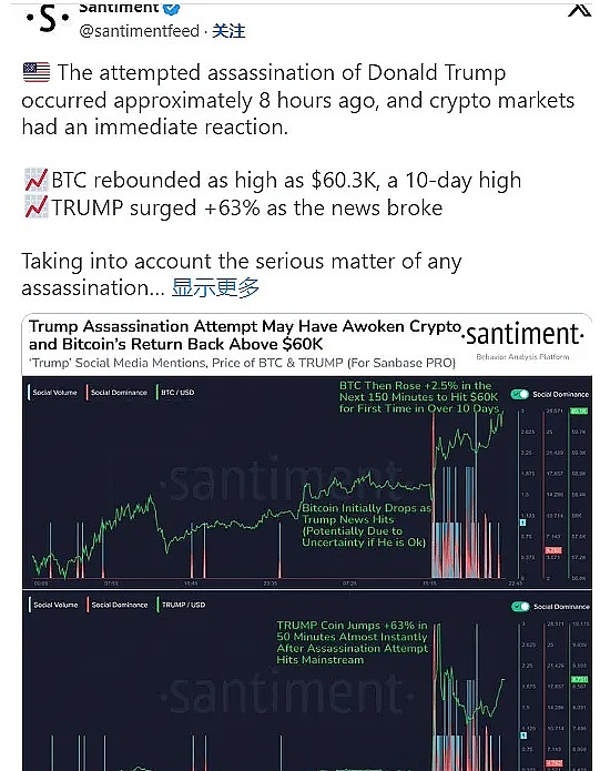 市场将此次暗杀事件视为有利于特朗普的消息,再加上他对比特币的公开支持,激发了投资者的积极反应。