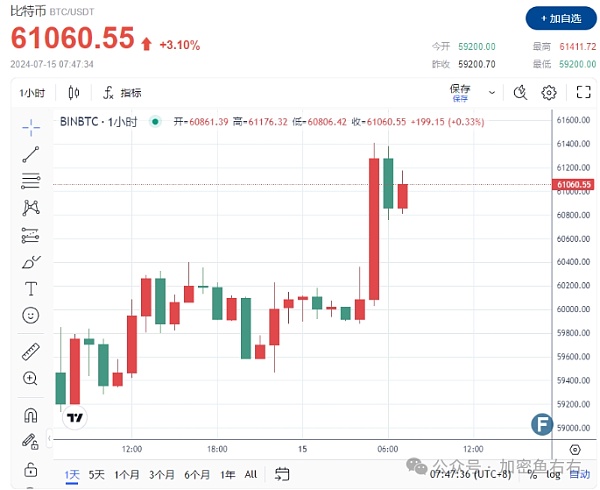 周一(7月15日)亚市开盘,比特币短线上冲攻破61000美元。特朗普竞选集会现场遭枪击未遂后,已确认仍将在本月晚些时候举行的比特币大会(Bitcoin 2024)上发表演讲。