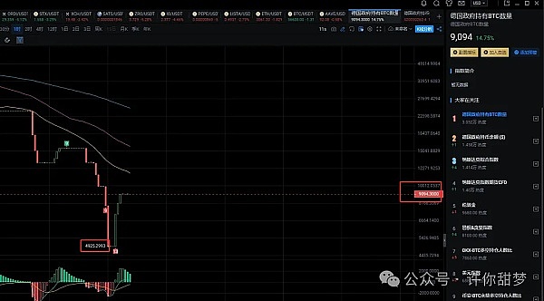 昨晚老美公布了cpi,前值3.4,预期3.4,公布值3.3,属于利好,但是盘面不涨反跌,BTC 从CPI公布到跌破57200支撑,只用了13个小时其中欧美盘一直稳定在57200的位置没有跌破,并且昨天德国卖btc 最低持有快5000多枚,现在陆续增持到了9000多枚,明显是有人在背后指导玩波段