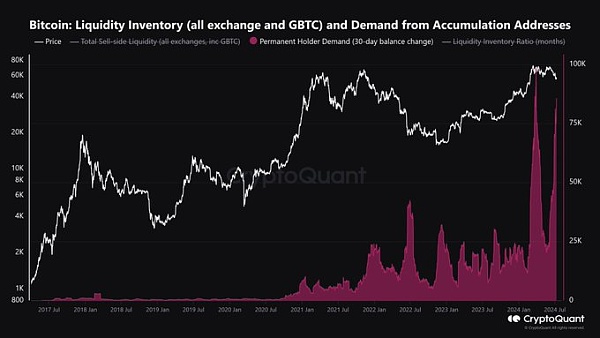 在$50k和$60k范围内购买比特币的投资者不会在$73k时卖出。他们会持有他们的BTC更长时间,目标是赚取丰厚的利润。