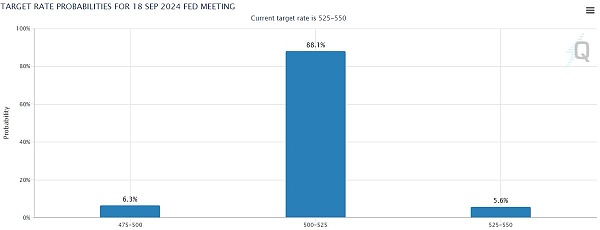 随着美国通胀降温,降息的可能性越来越大。美联储在9月宣布降息的概率为94.4%。