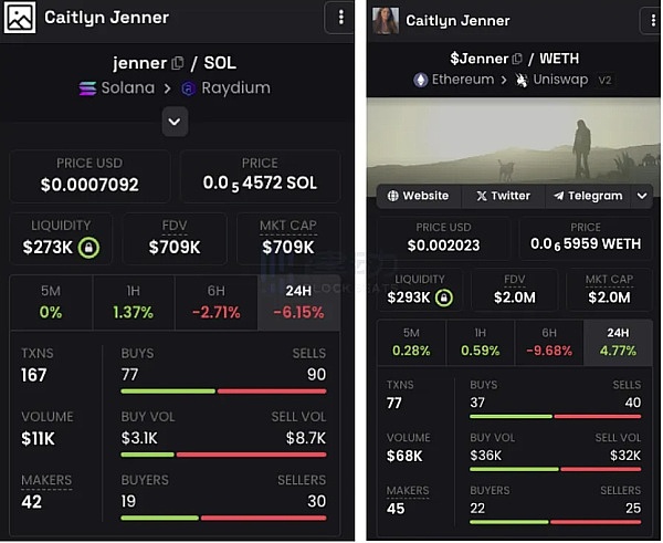 左图为 Solana 上的 JENNER,右图为以太坊上 JENNER