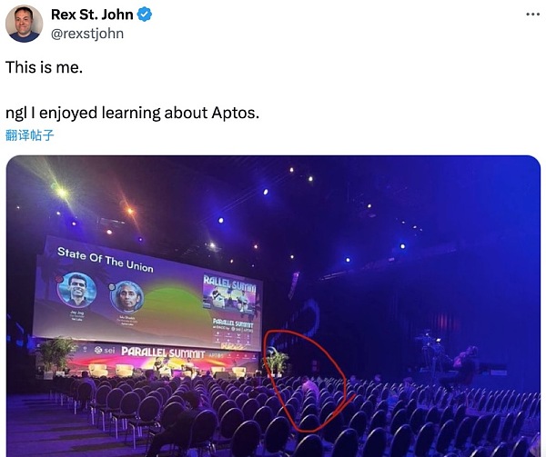 此外,本届 EthCC 的议程设置也遭到了不少吐槽,有人反馈主会场人烟稀少,也有人反映周边活动遇冷,总之不同活动的现场情况差异巨大。与 Vitalik 发表主题演讲时,现场爆满的情况不同,不少周边活动可能并没有那么多听众。Solana 客户端 Agave 开发商 Anza 团队成员 @rexstjohn 晒出了自己在参与有关 Aptos 周边活动时的现场照片。很明显,听众屈指可数。而这也不禁让人疑惑,500 多场周边活动的设置是必要的吗?或者只是为了彰显活动的「盛大」?