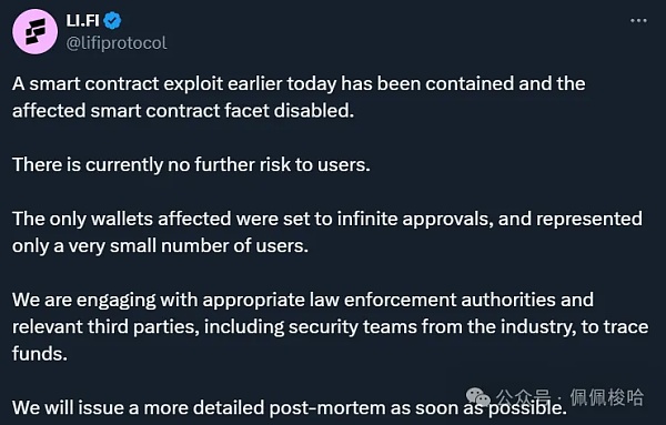 》LI.FI 官方更新:智能合约漏洞已被遏制