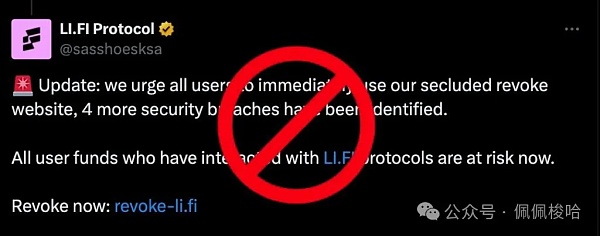 警报!LI.FI,我们的系统已经提交了有关你们协议的可疑交易,我们建议用户赶快撤销对以下地址的授权: