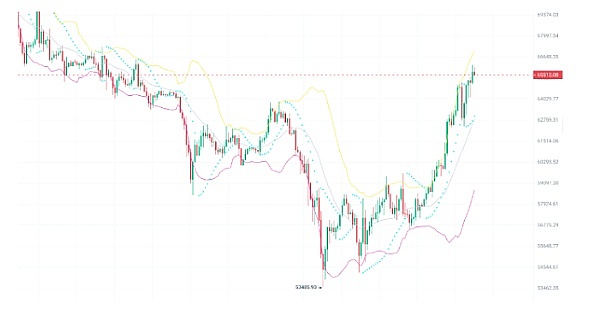 比特币在14 日便突破6 万美元,并持续攀升,仅管受昨日Mt.Gox 转移资金的消息影响,一度崩跌回6.2 万美元,但随后仍延续涨势,在今日稍早一度突破6.6万美元,创下一个月以来新高,近24 小时上涨1.85%。