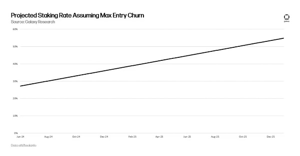 因此,假设从现在到 2025 年底,每个 epoch 添加的验证者数量都达到最大值,那么以太坊将需要一年多的时间(准确地说是 466 天)才能达到 50%的质押率。